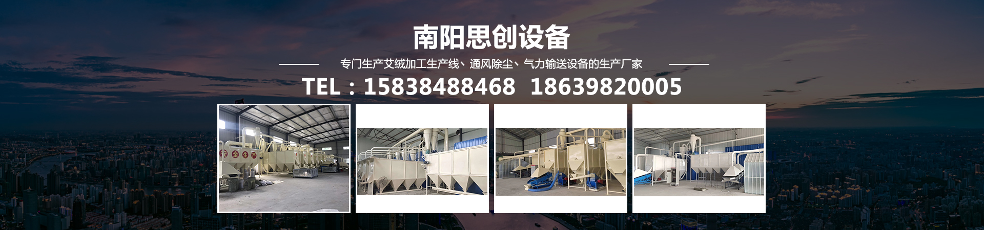 脈沖除塵器 艾草提絨機(jī) 全封閉艾草提絨機(jī) 小型提絨機(jī) 自動上料拌絨機(jī)地址:南陽市仲景北路車管所南300米